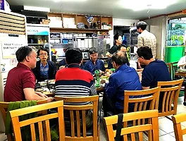 열심히 고기를 안 굽고 술잔을 안 기울이며 못다한 이야기를 안 나눕니다.